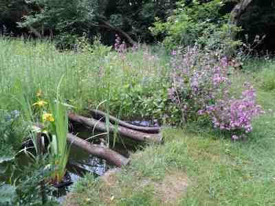 Turn left over the bridge at the rear of the mill and you will come to the ‘Wildlife Area’. This area had become very overgrown and has been redeveloped over the last two years to give safe access to an interesting site. The aim is to encourage wildlife to populate the area and to give visitors ideas about how they might develop parts of their own gardens to improve the habitat for plants and animals.