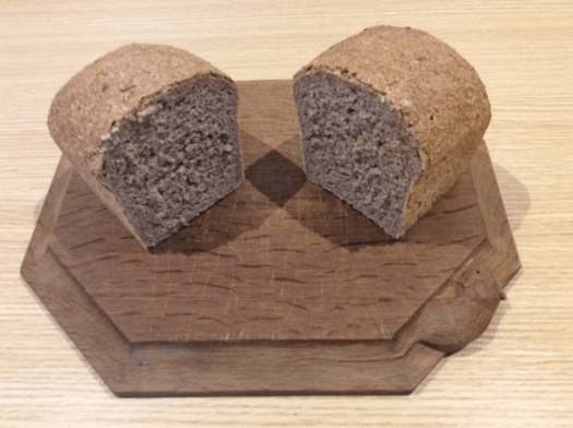 The pictures show two loaves made from 100% of the new Pakenham wholemeal spelt flour, and one loaf cut open to show the crumb.